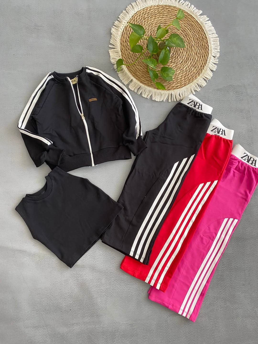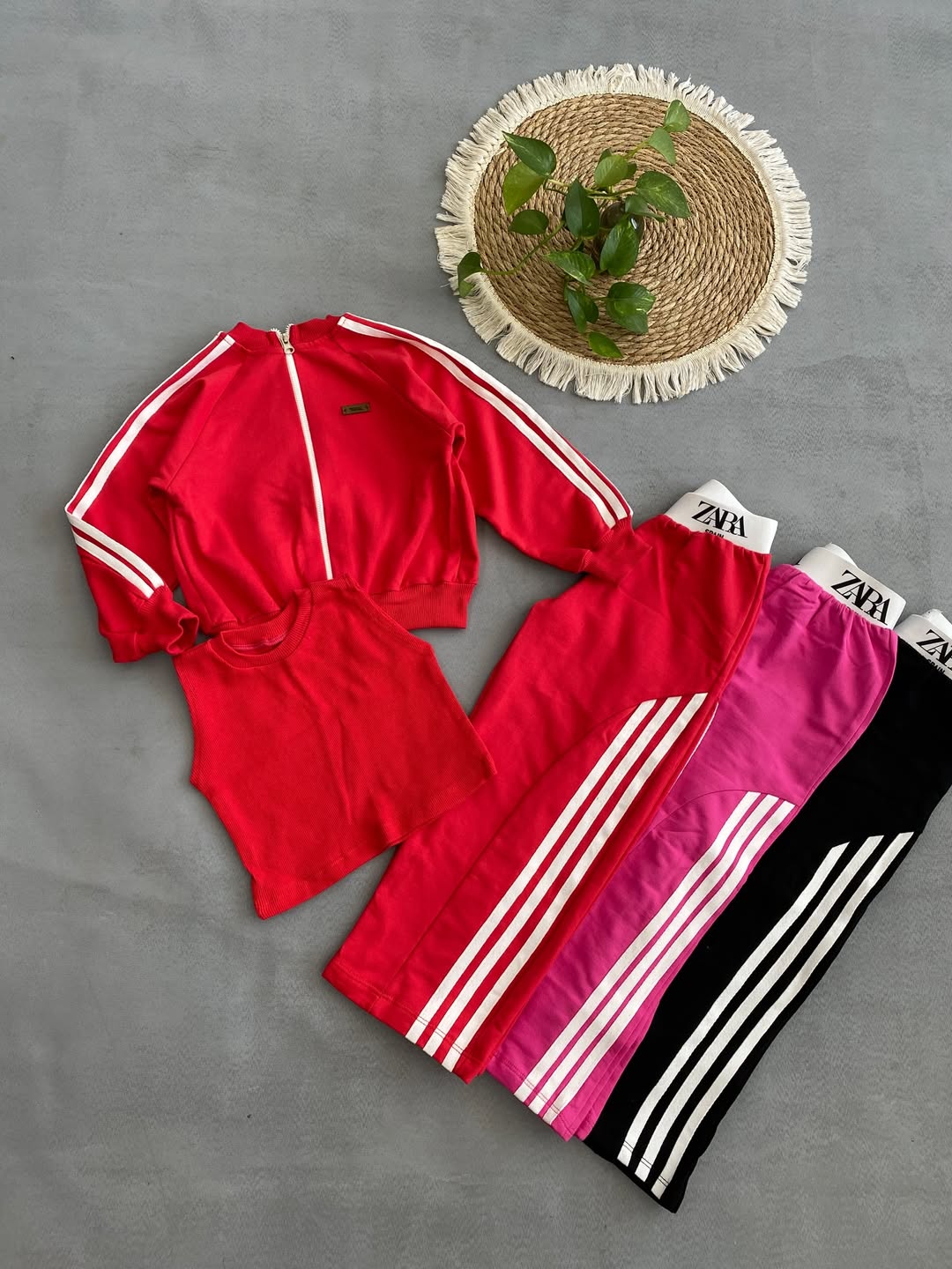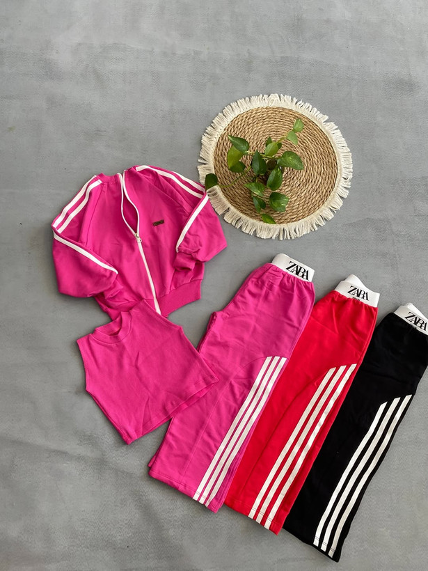 ست سه تکه سویشرت و شلوار و کراپ نواربغل ۱۰۱۰