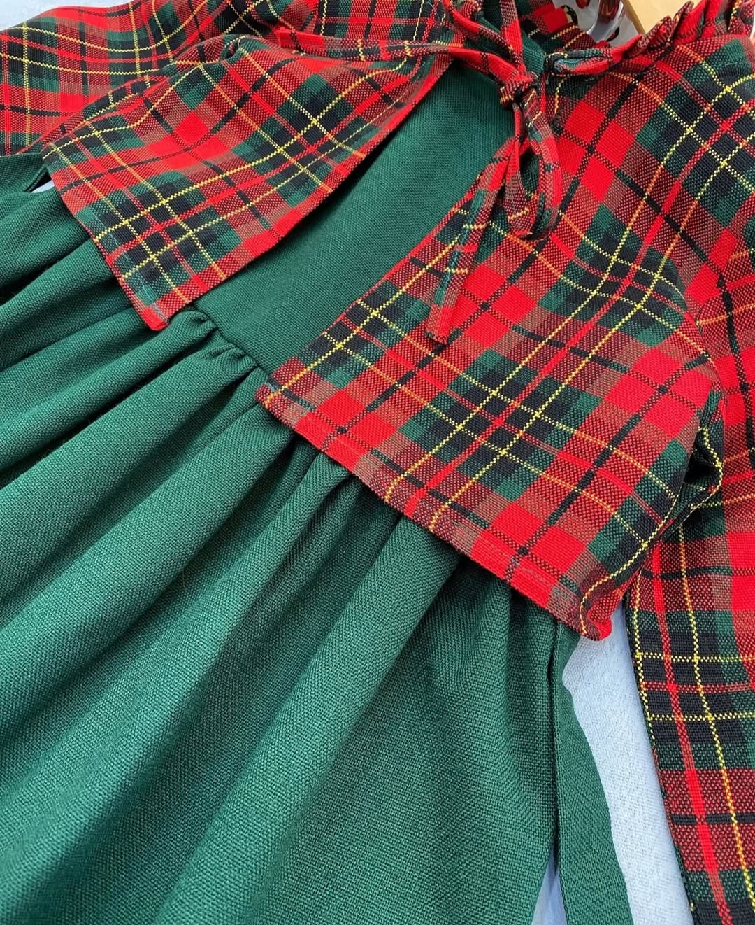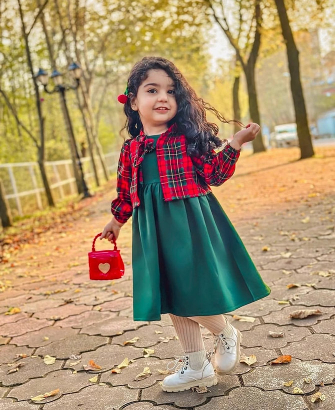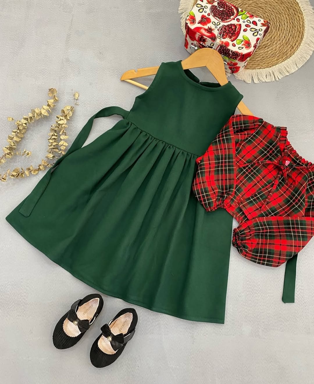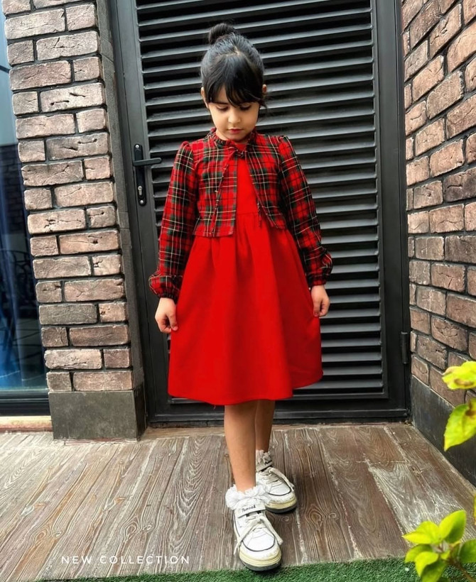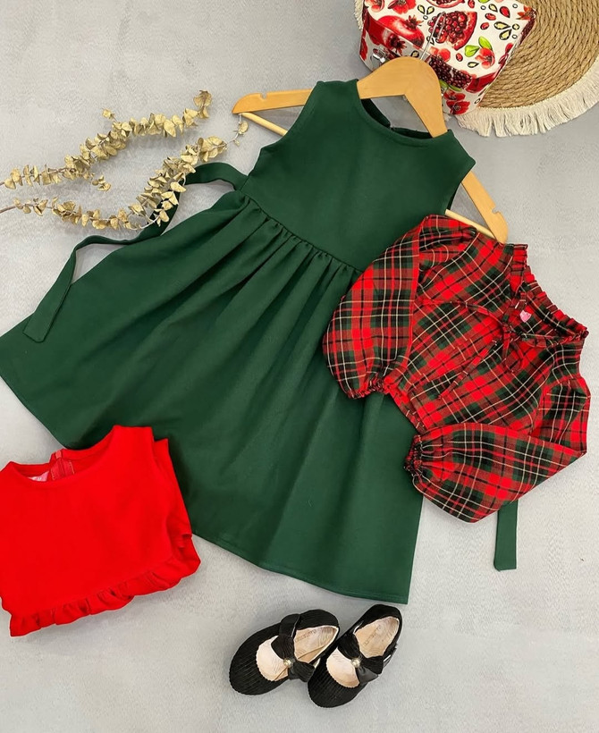 ترکیب رنگ سبز و قرمز کت چهارخونه وسارافون قرمزاناری خوش رنگ و سبز لاجوردی یه ست عالی ساخته