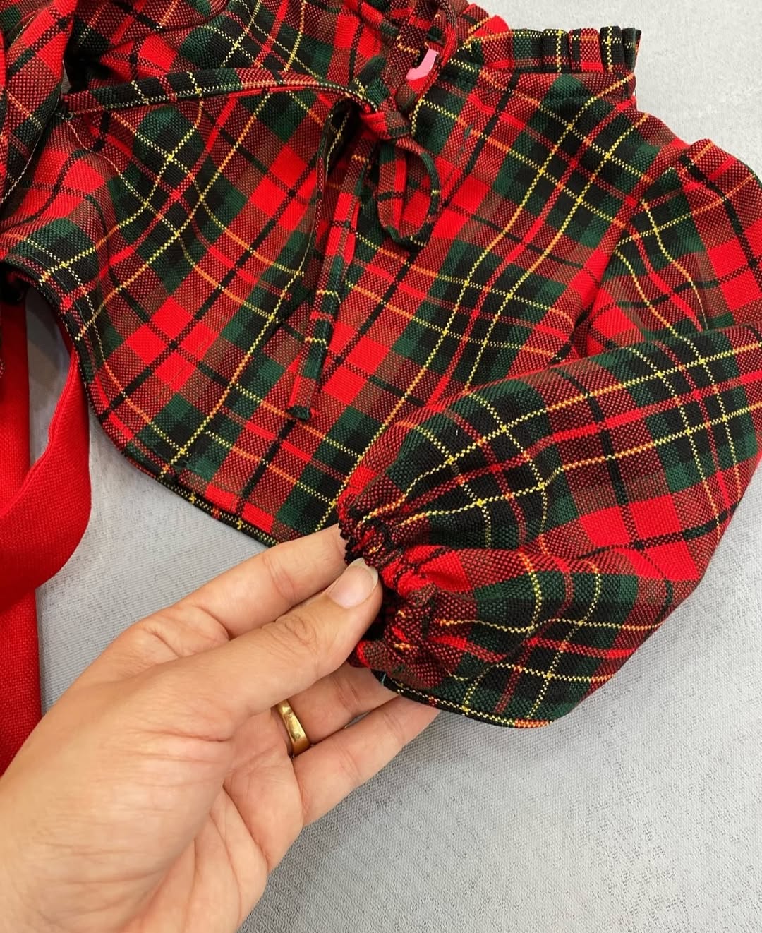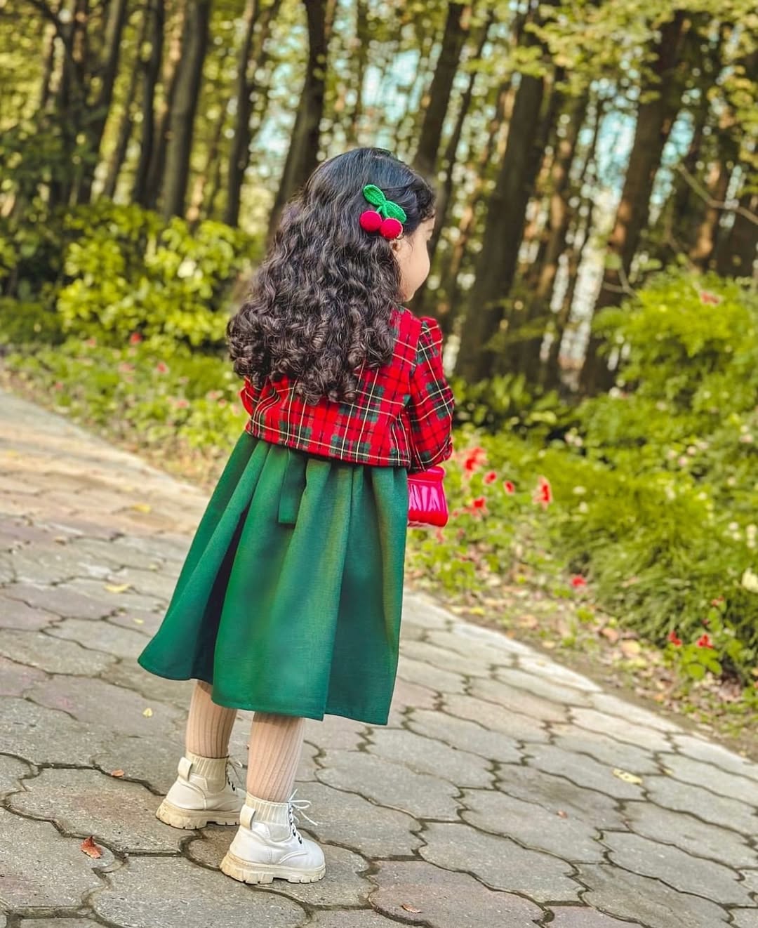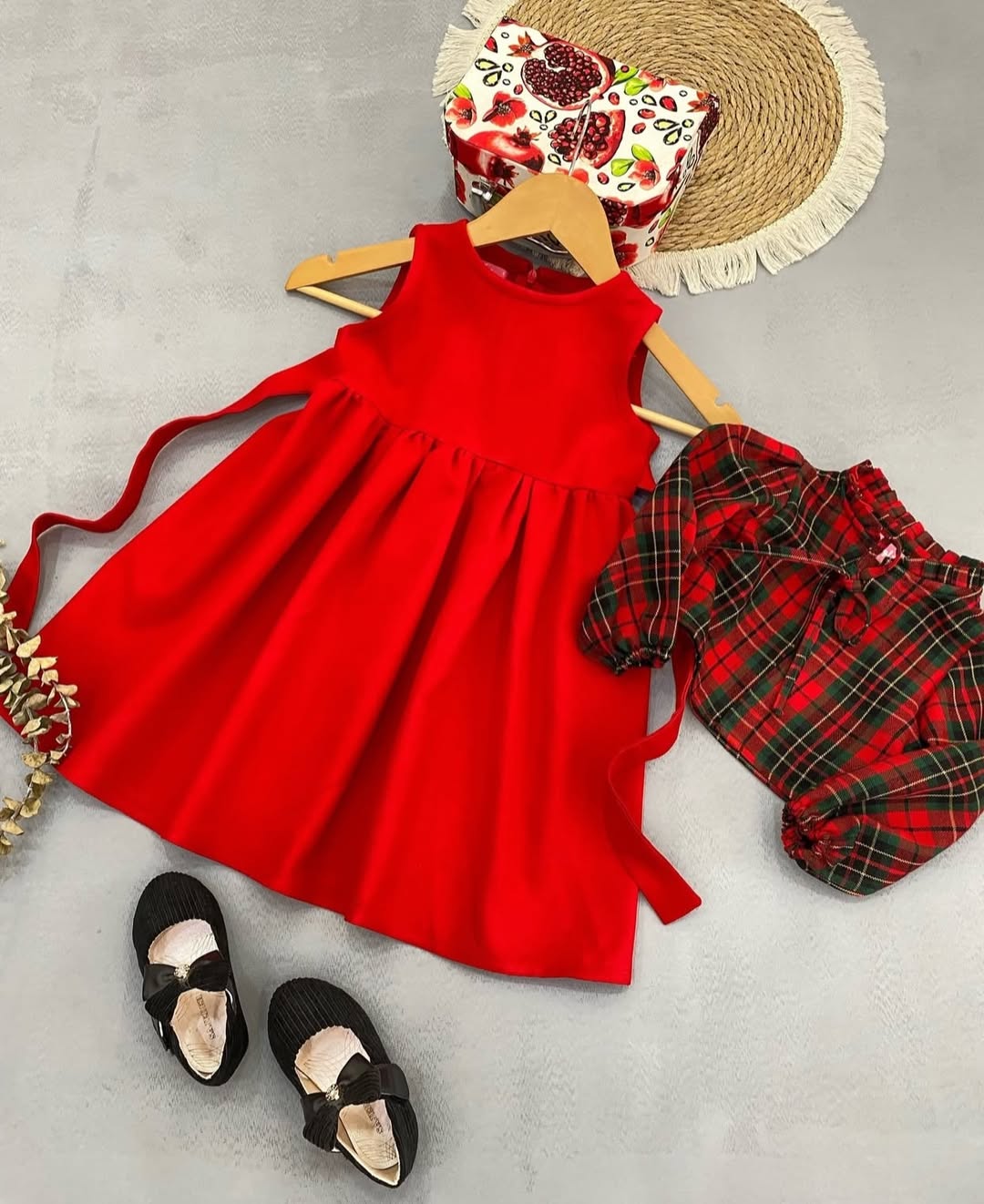 ترکیب رنگ سبز و قرمز کت چهارخونه وسارافون قرمزاناری خوش رنگ و سبز لاجوردی یه ست عالی ساخته
