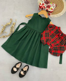 کت و سارافون یلدایی چهارخونه سبز و قرمز