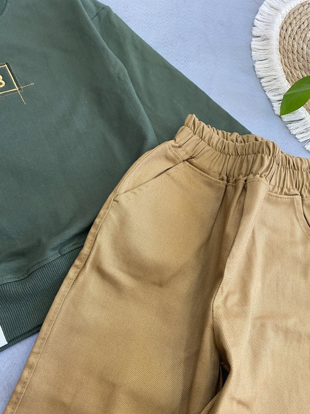 بلوز دورس سه نخ و شلوار کتان پنبه گرم بالا
